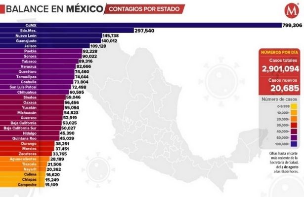 Casos de coronavirus en México por estados
